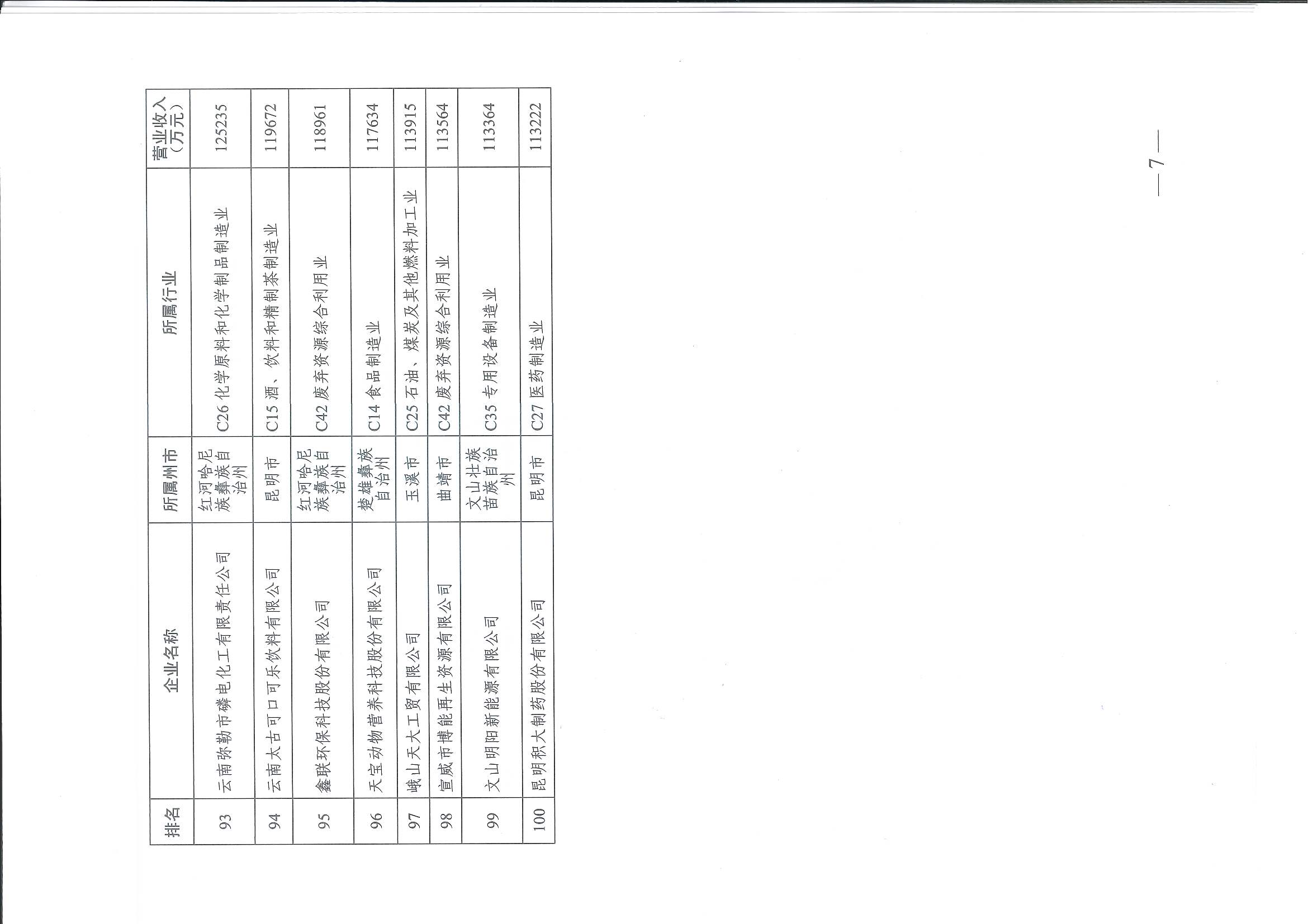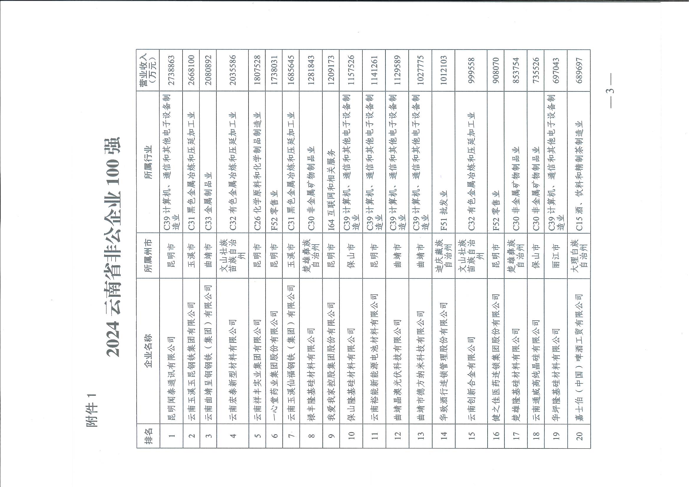 2024年云南省非公企業(yè)100強(qiáng)榜單