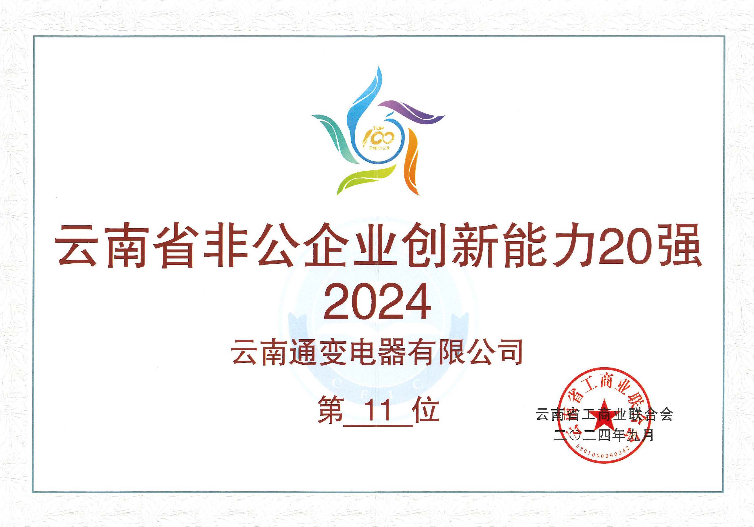 云南通變電器有限公司全體職工團(tuán)隊(duì)的努力下,分別入圍“2024年云南省非公企業(yè)100強(qiáng)”第85位,同時(shí)也入圍了“2024年云南省非公企業(yè)創(chuàng)新能力20強(qiáng)”第11位。