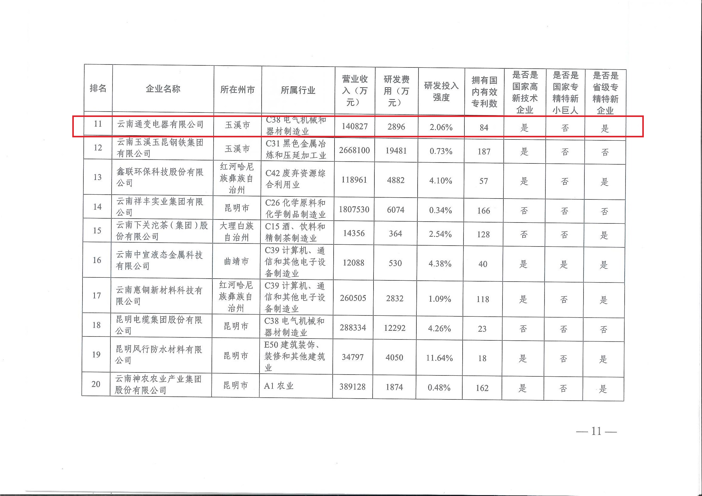 2024 云南省非公企業(yè)創(chuàng)新能力20強(qiáng)榜單